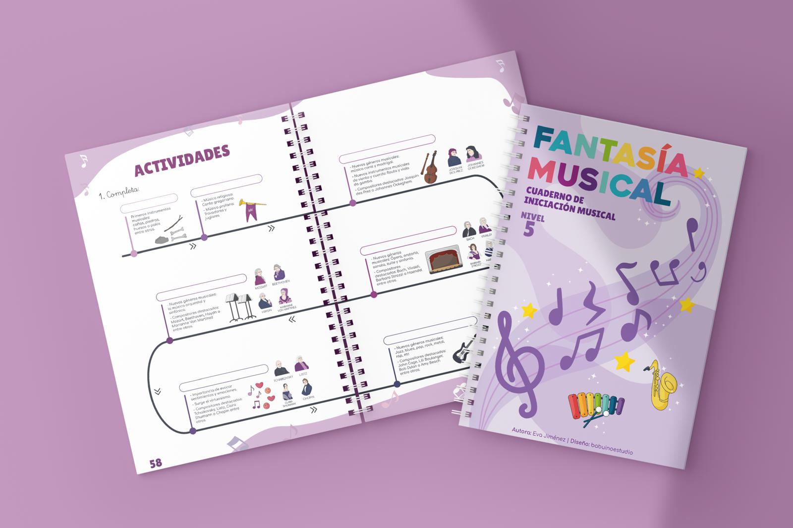 El cuaderno Fantasía Musical Nivel 5 incluye los siguientes contenidos: